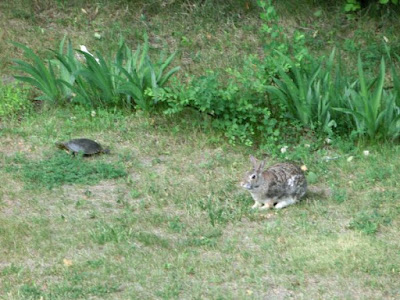 しばらく前から1匹のウサギが住み着いていて、私たちがかなり近づいても逃げもしなくなりました。